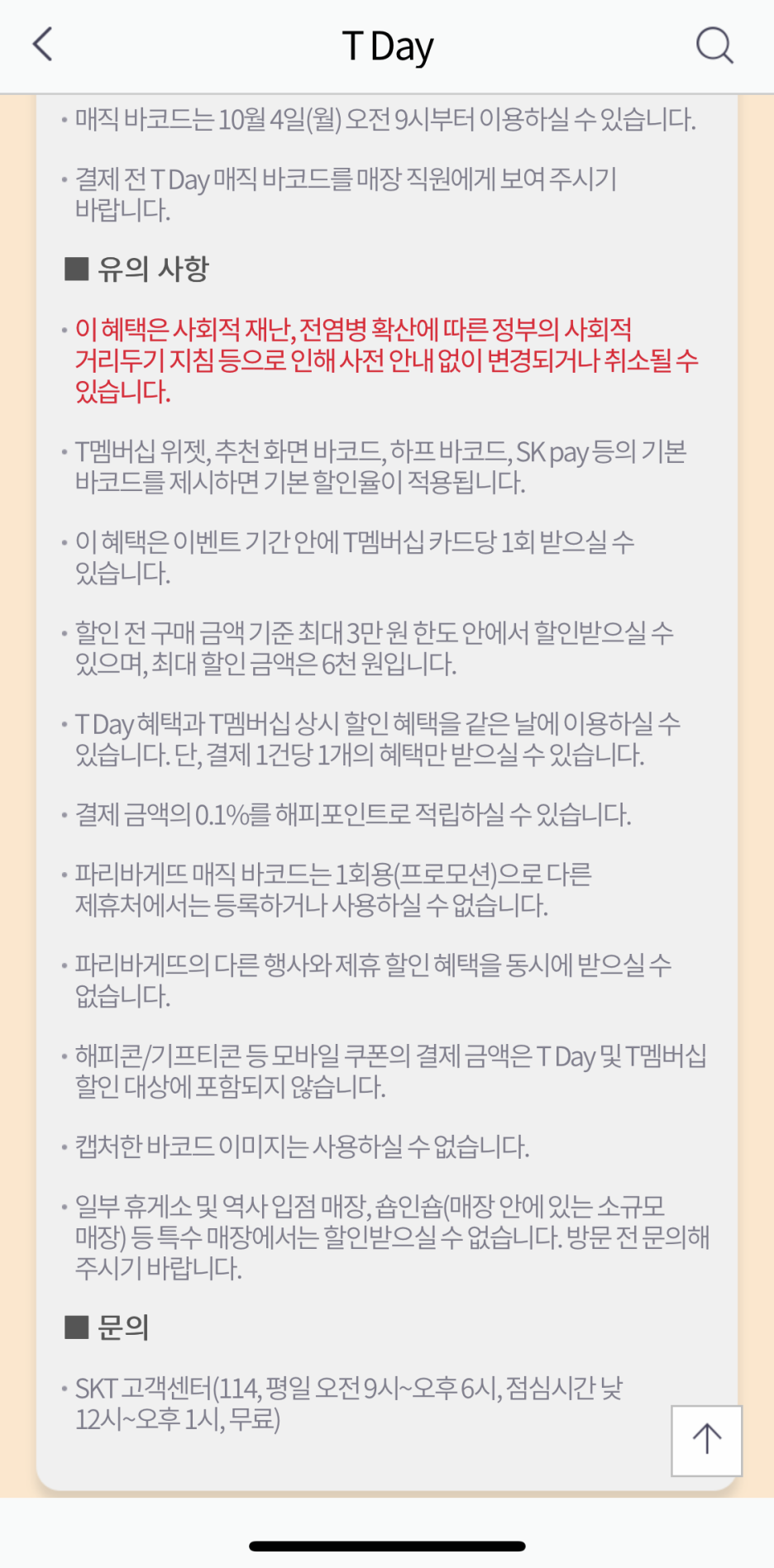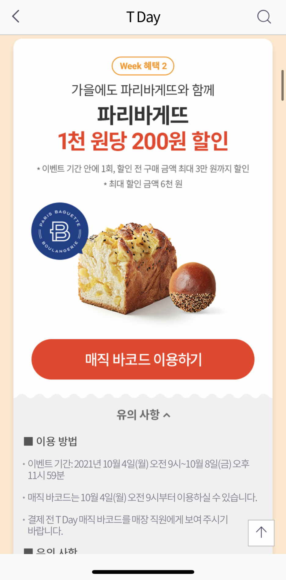 파리바게뜨 20% 할인 (T멤버십 티멤버십)