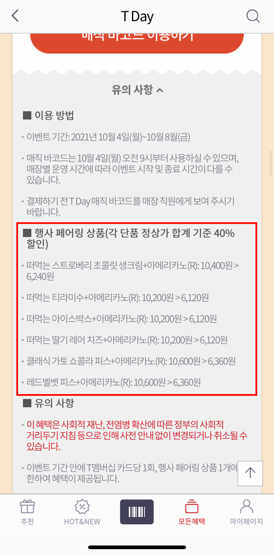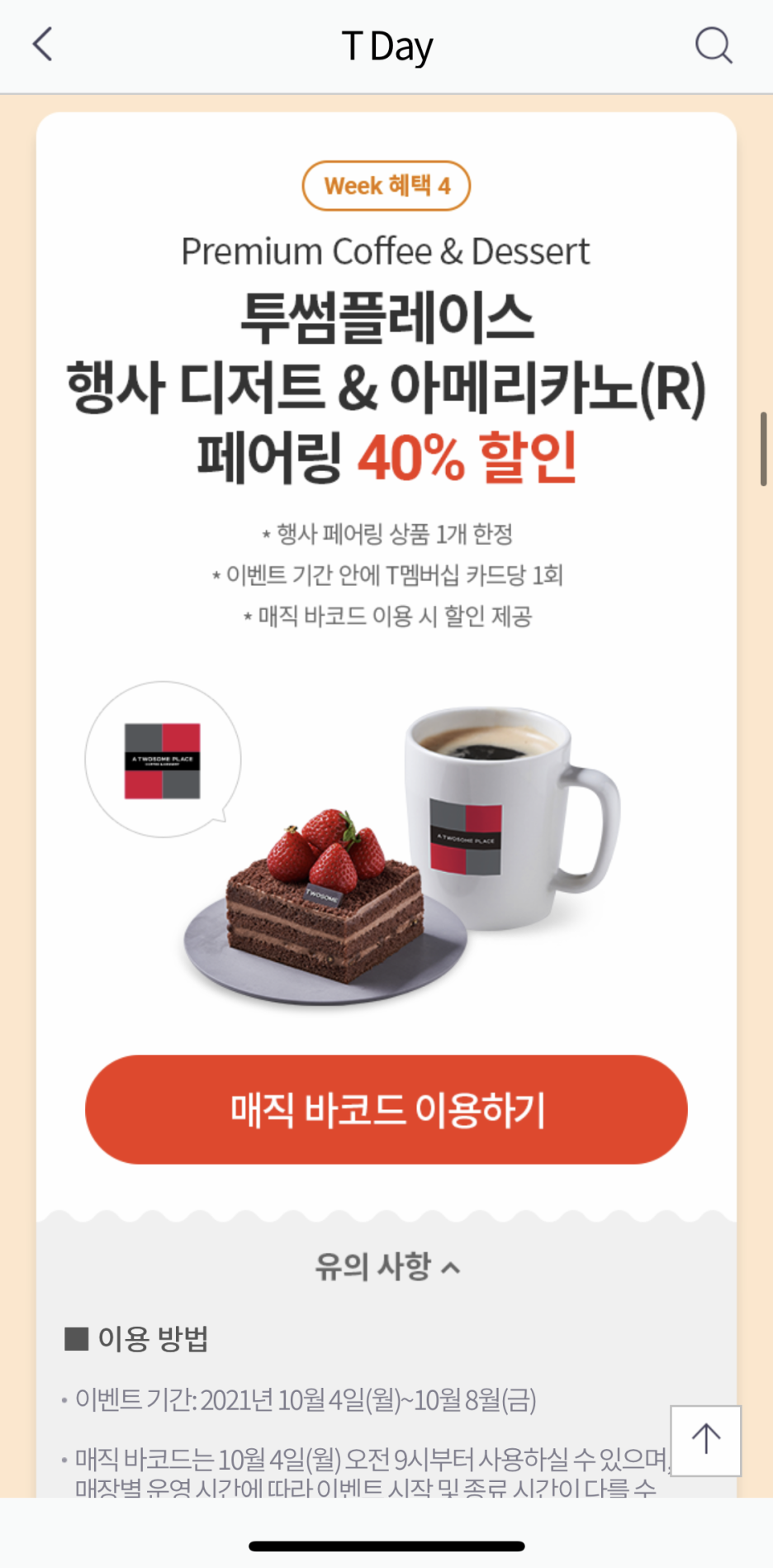 투썸플레이스 행사 디저트&아메리카노 페어링 40% 할인 (T멤버십 티멤버십)
