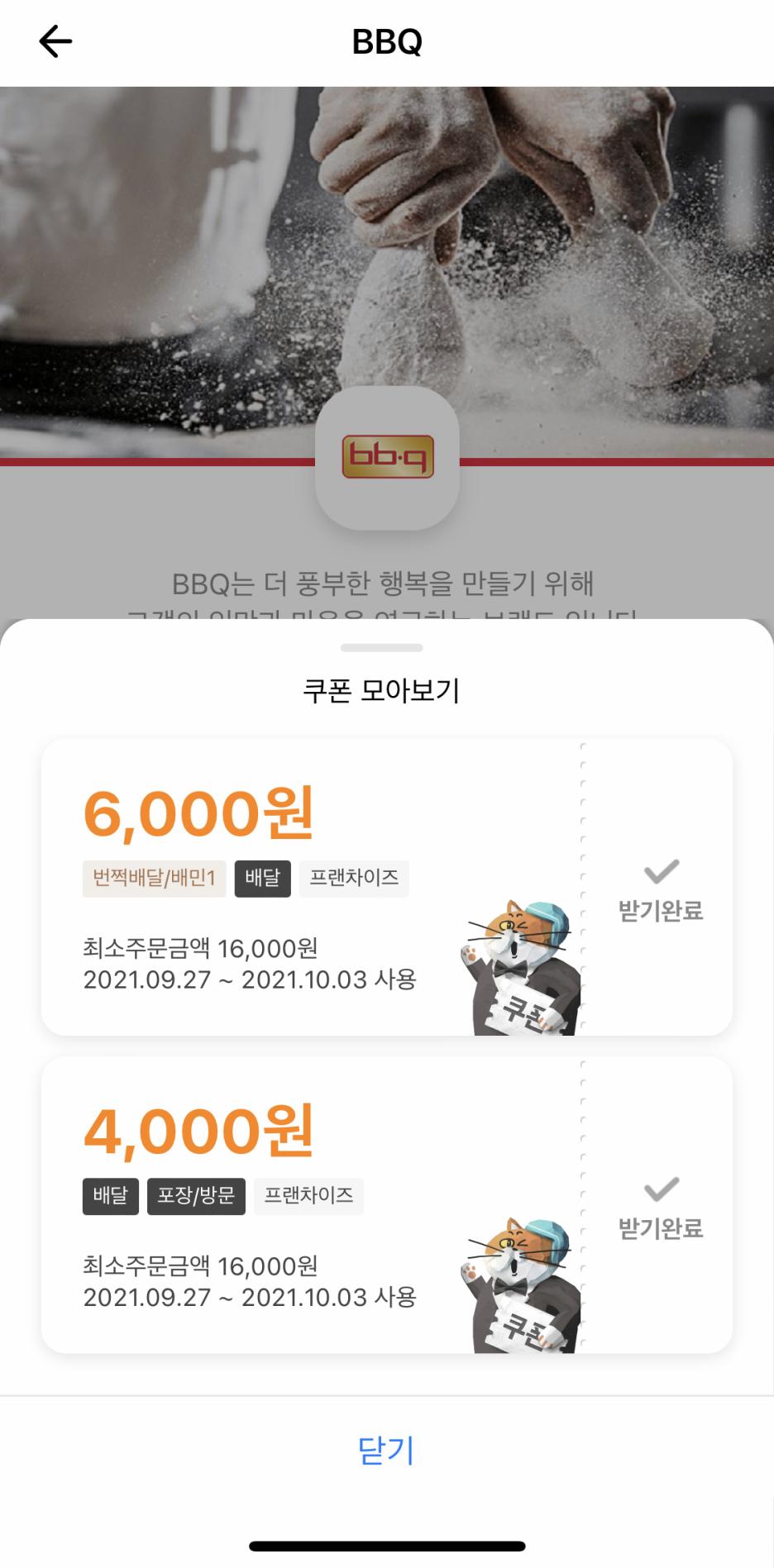 BBQ 비비큐 6000원 할인 (배달의민족)