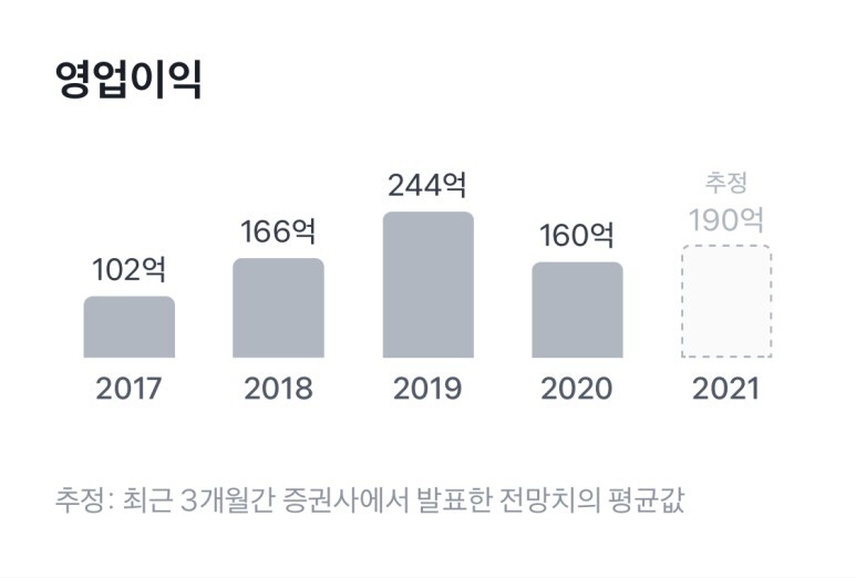 매출액과 영업이익은 2019년까지 우상향 중이었으나,