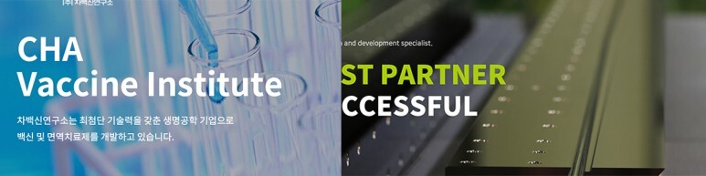 (좌) 차백신연구소 홈페이지 배너 / (우) 지아이텍 홈페이지 배너