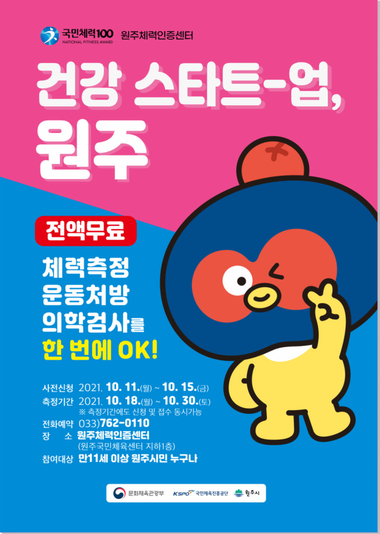문의는 원주체력인증센터(033-762-0110)로 예약하세요~