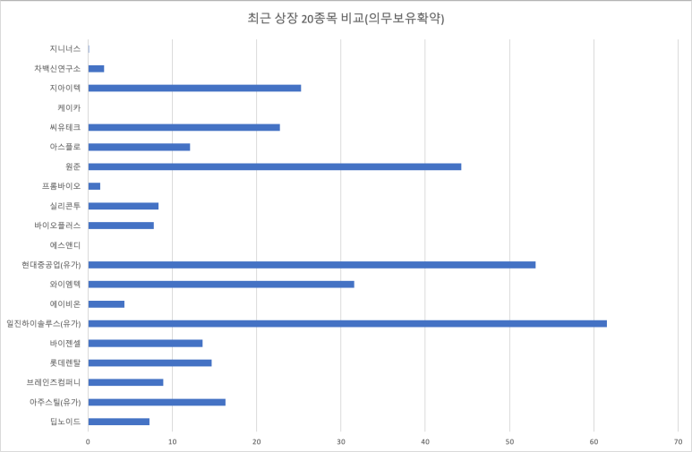 최근 상장 20종목 비교 (상장 당일 시초가)