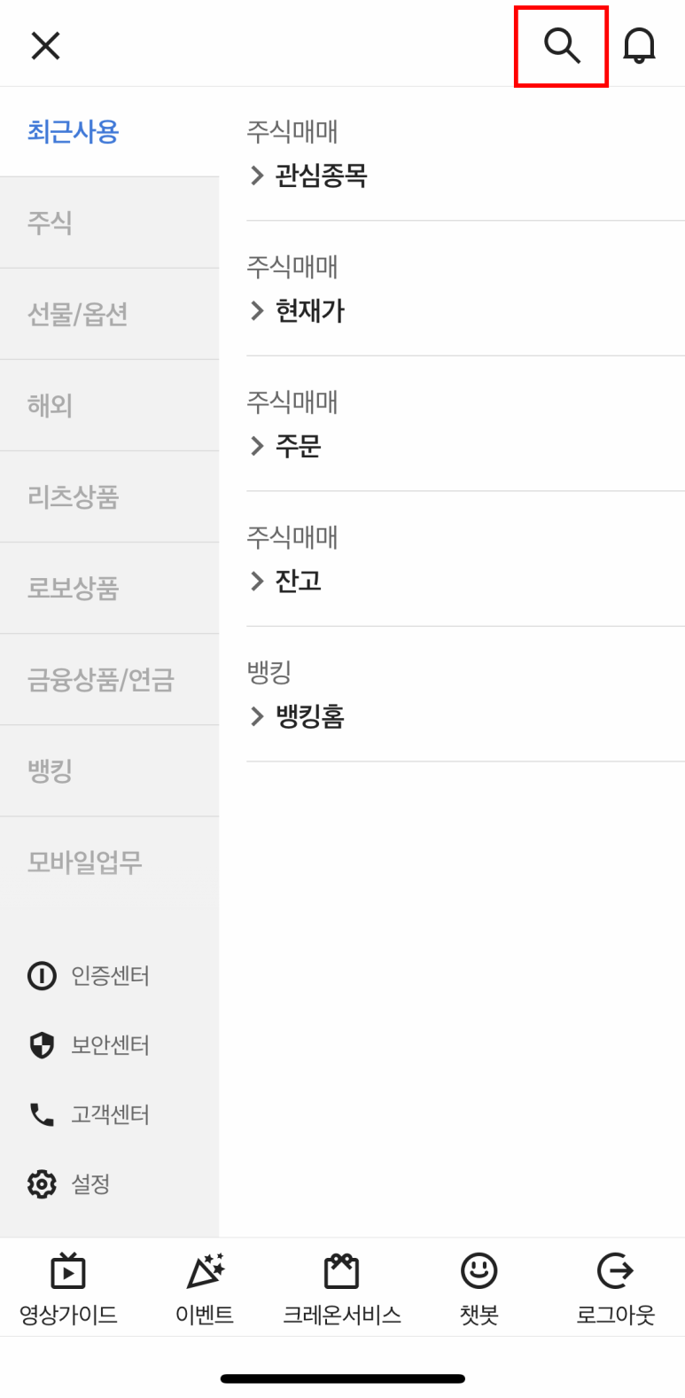 먼저 크레온 어플에서 왼쪽 상단에 메뉴를 클릭합니다.