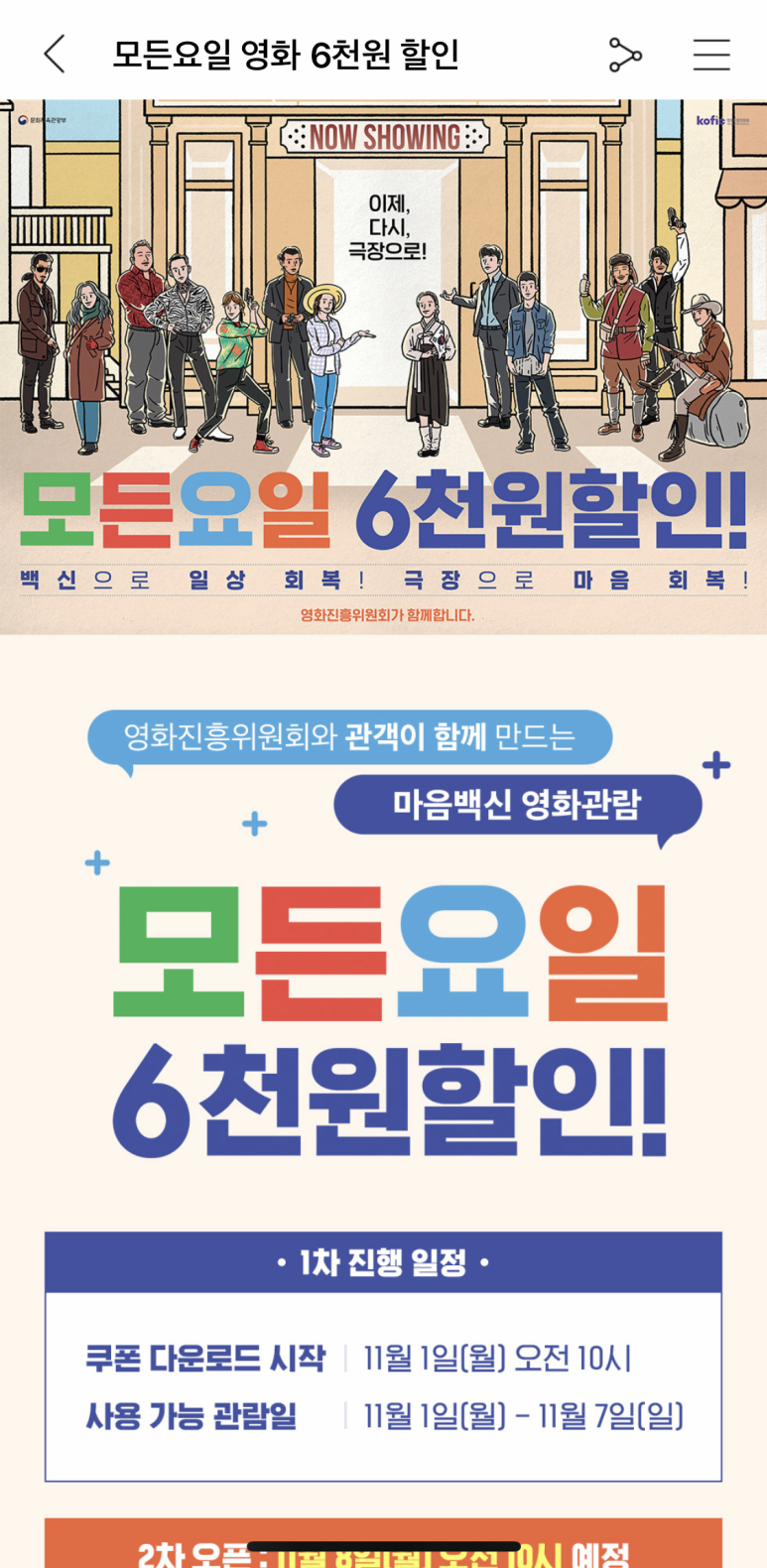 영화진흥위원회와 함께 할인을 해주는 이벤트입니다.