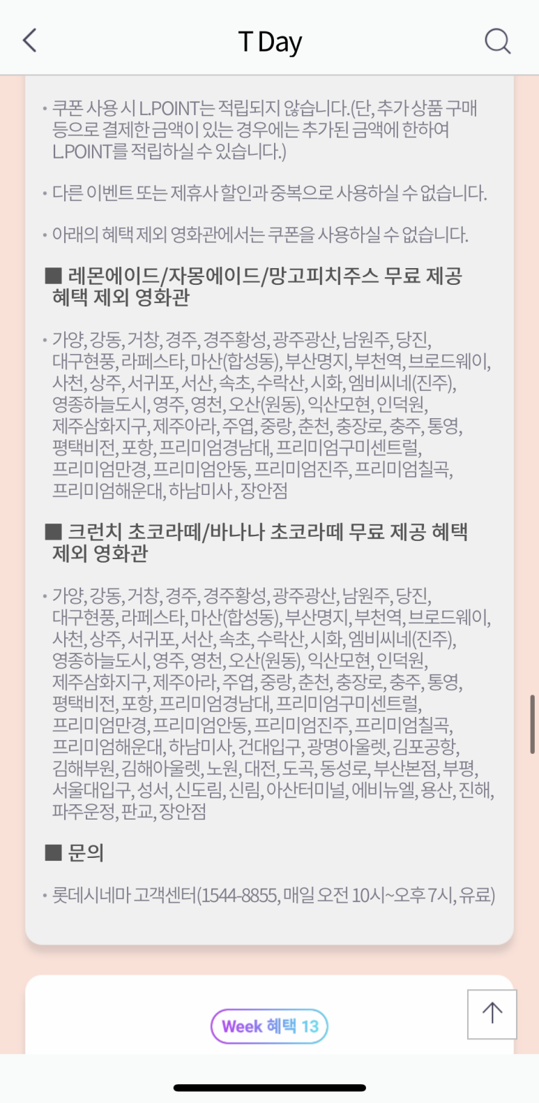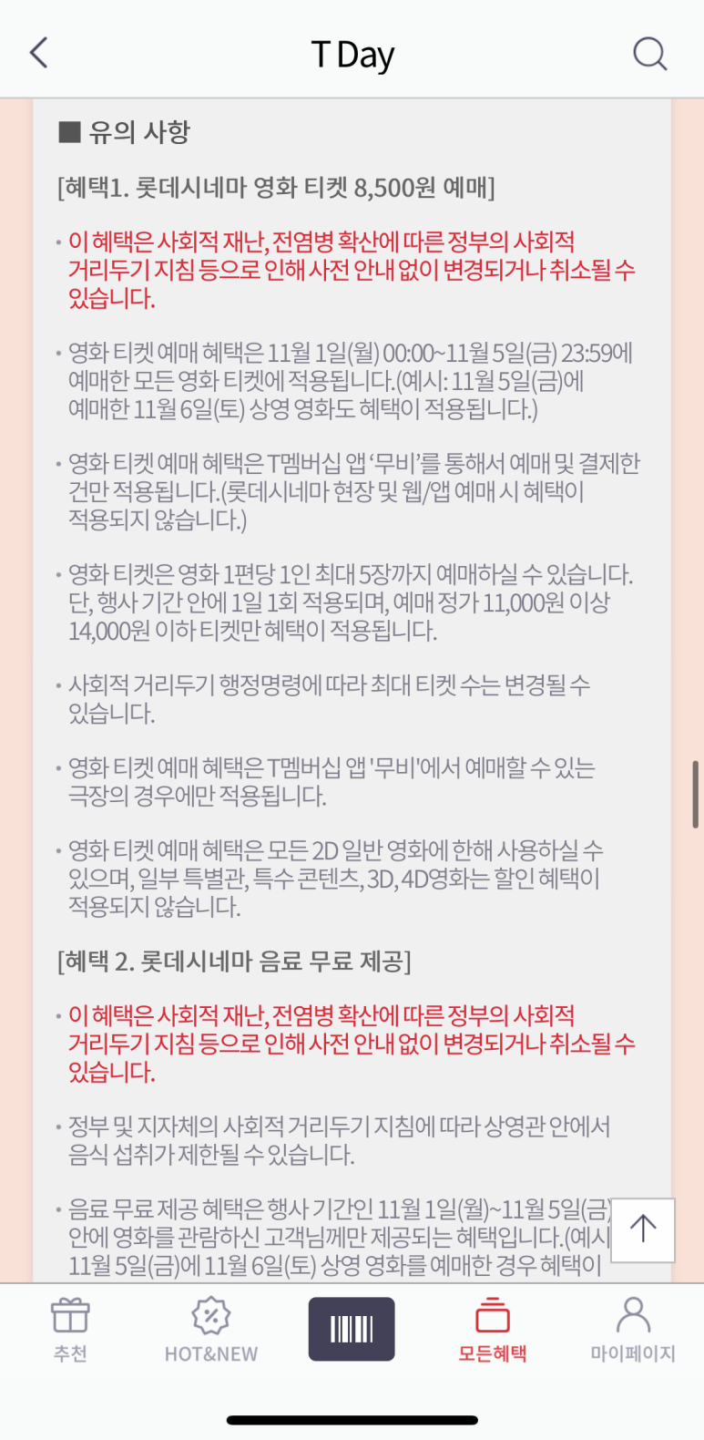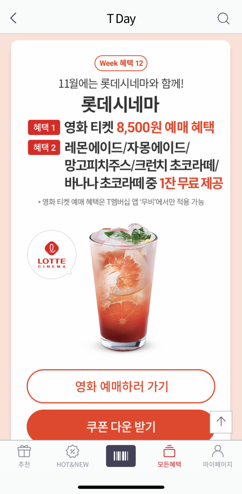 롯데시네마와 메가박스도 동일하게 가격할인 적용받을 수 있습니다.