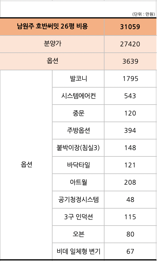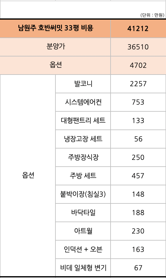 분양가만큼 옵션 추가비용도 잘 확인하셔서