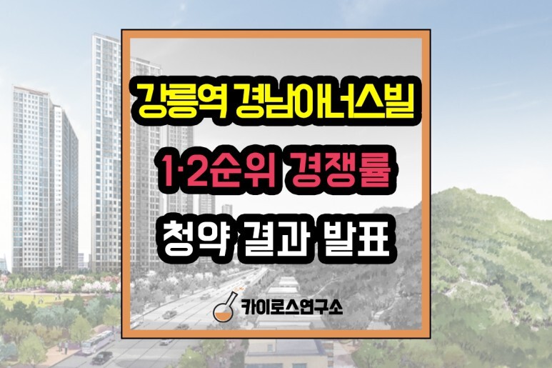 어제인 12월27일(월) 강릉역 경남아너스빌 더센트로의 특별공급 경쟁률 발표가 있었습니다. 최고 경쟁률 9.33 : 1 을 기록했는데요. 12월28일(화) 오늘 저녁 7시30분 일반공급 1순위 경쟁률이 발표됐습니다.